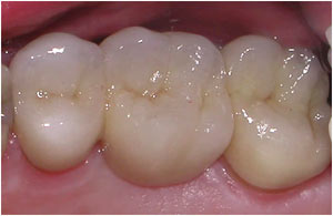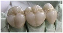 These are the best looking crowns, and probably the best values for your money as far as esthetics are concerned. Contrary to what might appear, these materials are extremely strong and fracture tough. The material can well sustain the masticatory forces, providing durable crowns and bridges with beautiful esthetic results. They can be conveniently and reliably used in any part of the mouth. These are also the preferred material of choice in patients with metal allergies.