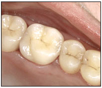Gold is usually used on the back teeth, as it has several advantages over porcelain teeth